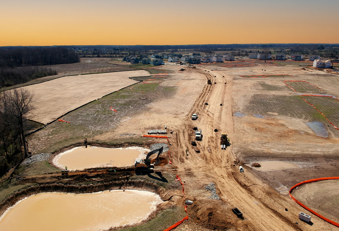 Located in Middletown, DE Located just off 896 and a quarter mile from the C&D Canal. This project is being developed by K. Hovanian Homes. The scope of works includes 99 single family home lots. Excavation of over 200,000 cubic yards of earth needed to be cut and filled on lots. Pipe work includes a gross total 33,000 linear feet ranging from storm sewer, sanitary sewer, water main, and roadway underdrain.